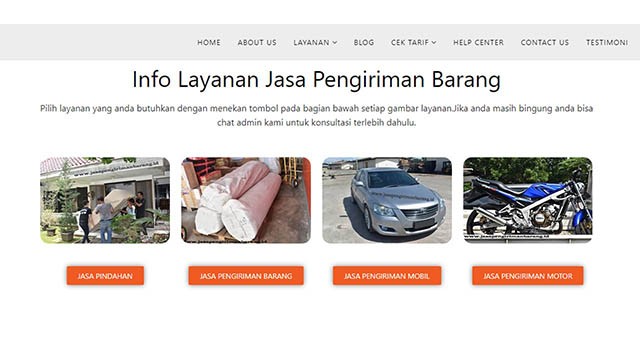 Pada halaman ini kamu akan diberi pilihan informasi yang kamu butuhkan, seperti jenis armada, jangkauan, cara pesan, tips, testimoni dan harga jasa pengiriman mobil.